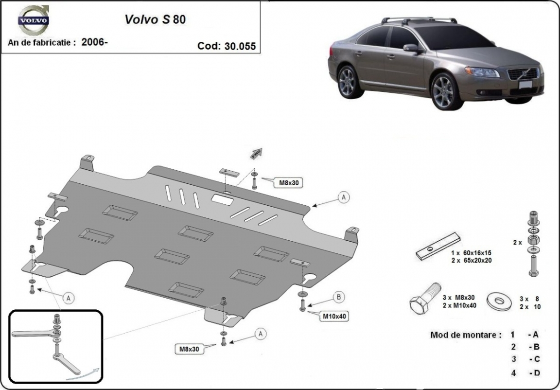 Protection sous moteur et de la boîte de vitesse Volvo S80