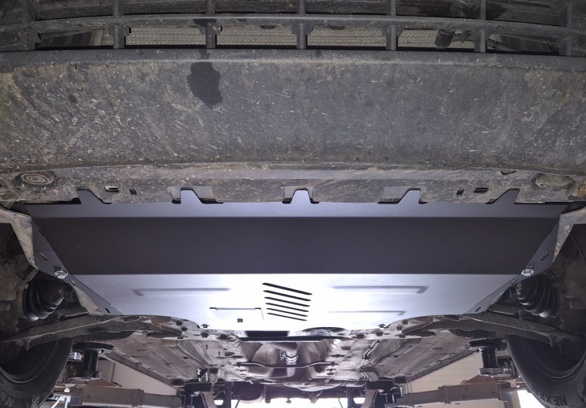 Le cache métallique protège: le bas du moteur, la boîte de vitesses Il y a une ouverture pour le carter d'huile, il n'est donc pas nécessaire de l'enlever pour changer l'huile. Le cache de protection est réalisé en Acier thermolaqué avec une épaisseur de 2 mm. Vis, écrous, pinces, tous les accessoires de fixation sont inclus. Toutes les plaques de protection sont revêtues de poudre pour prévenir la corrosion. L'extérieur de la plaque de protection est doté de renforts en Acier thermolaqué, ce qui augmente la résistance aux chocs. |