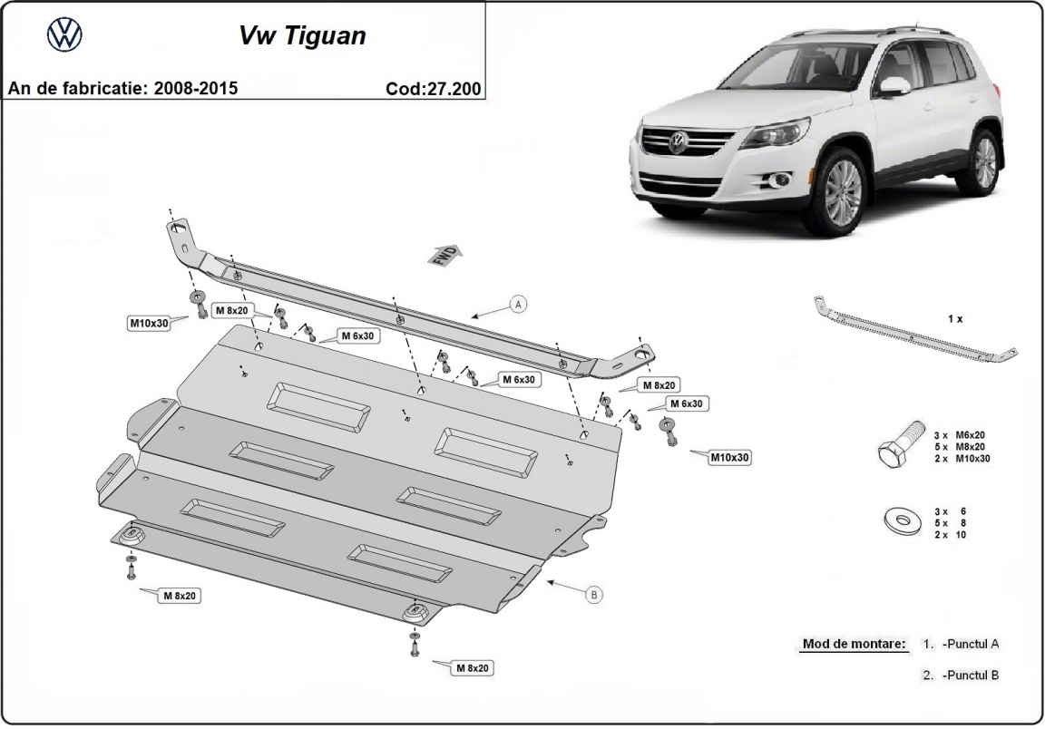 Protection sous moteur et de la boîte de vitesse VW Tiguan (2008-2015)