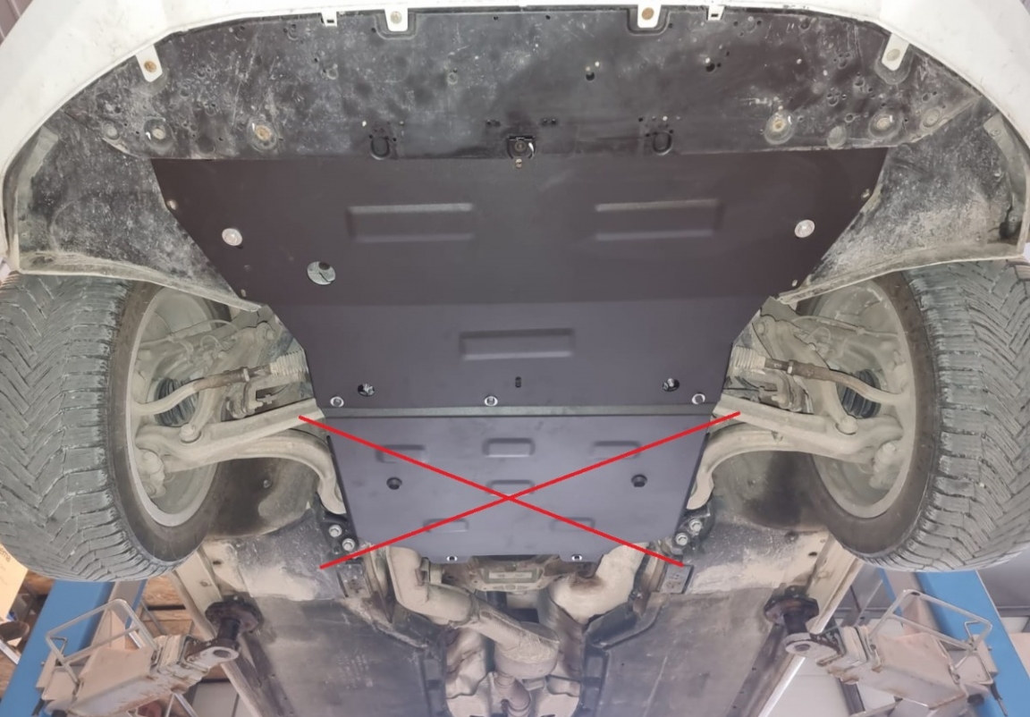 Le cache métallique protège: le bas du moteur, radiateur Le cache de protection est réalisé en Acier thermolaqué avec une épaisseur de 2 mm. Vis, écrous, pinces, tous les accessoires de fixation sont inclus. Toutes les plaques de protection sont revêtues de poudre pour prévenir la corrosion. L'extérieur de la plaque de protection est doté de renforts en Acier thermolaqué, ce qui augmente la résistance aux chocs. |