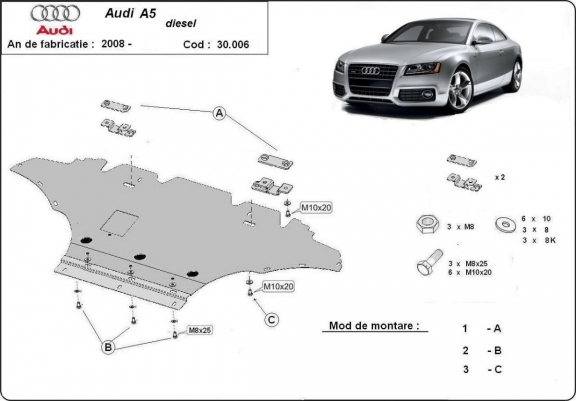 Protection sous moteur et de la radiateur Audi A5 diesel (2008-2016)