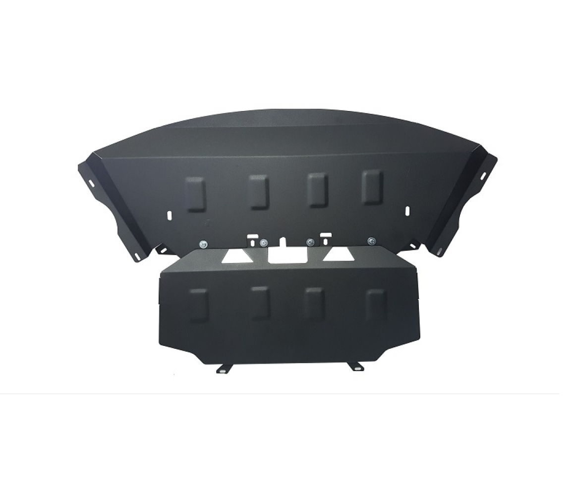 Le cache métallique protège: le bas du moteur, radiateur, pare-choc avant Le cache de protection est réalisé en Acier thermolaqué avec une épaisseur de 2 mm. Vis, écrous, pinces, tous les accessoires de fixation sont inclus. Toutes les plaques de protection sont revêtues de poudre pour prévenir la corrosion. L'extérieur de la plaque de protection est doté de renforts en Acier thermolaqué, ce qui augmente la résistance aux chocs. |