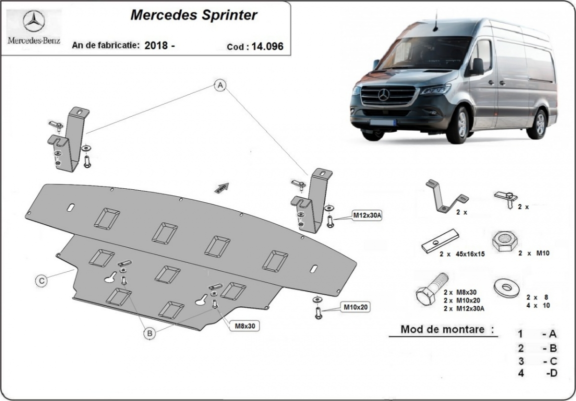 Protection sous moteur et de la radiateur Mercedes Sprinter- Propulsion (2018-2026)