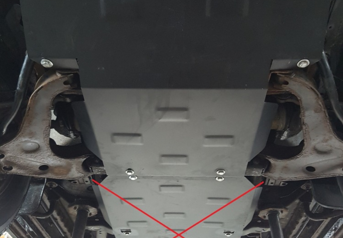 Le cache métallique protège: le bas du moteur, radiateur Le cache de protection est réalisé en Acier thermolaqué avec une épaisseur de 3 mm. Vis, écrous, pinces, tous les accessoires de fixation sont inclus. Toutes les plaques de protection sont revêtues de poudre pour prévenir la corrosion. L'extérieur de la plaque de protection est doté de renforts en Acier thermolaqué, ce qui augmente la résistance aux chocs. |