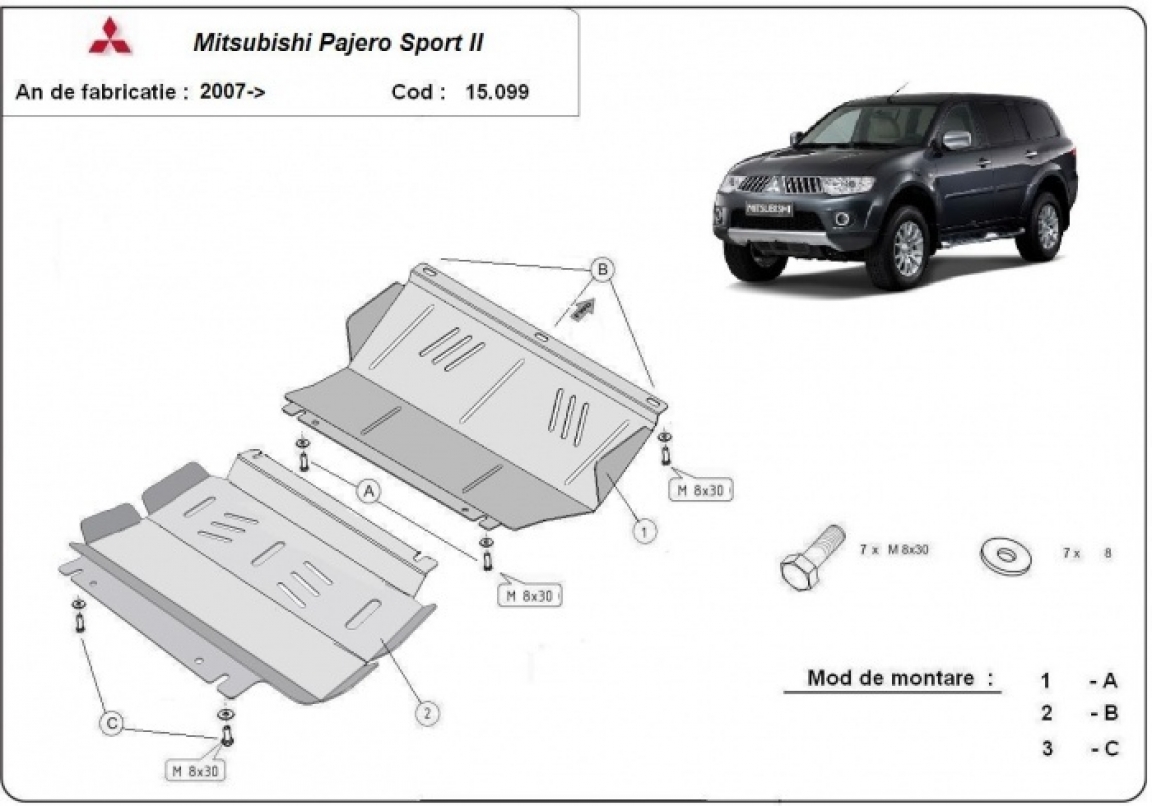 Protection sous moteur et de la radiateur Mitsubishi Pajero Sport 2 (2008-2016)
