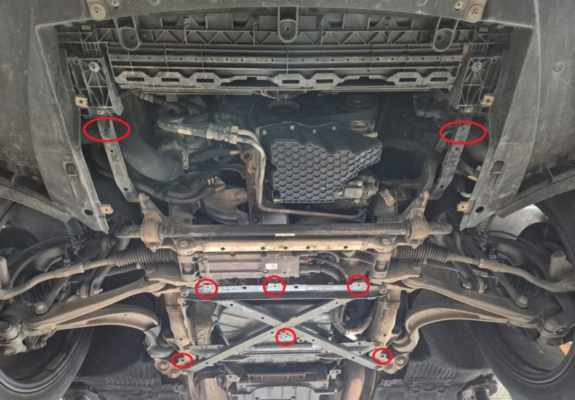| Chaque voiture a des trous de vis fabriqués en usine pour le montage de la plaque de protection, ce qui rend le montage très facile. Vous pouvez le faire vous-même ou à n'importe quel point de service automatique. |
