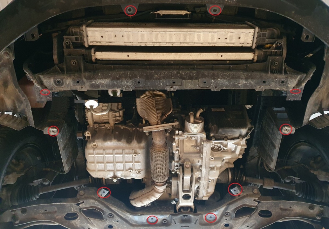 | Chaque voiture a des trous de vis fabriqués en usine pour le montage de la plaque de protection, ce qui rend le montage très facile. Vous pouvez le faire vous-même ou à n'importe quel point de service automatique. |