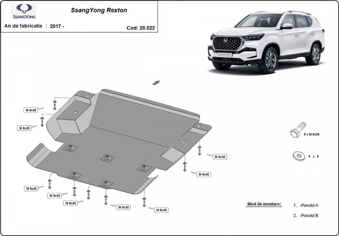 Protection sous moteur et de la radiateur SsangYong Rexton (2017-2026)