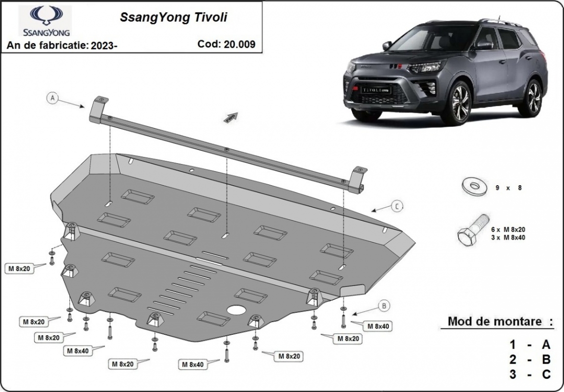 Protection sous moteur et de la radiateur SsangYong Tivoli (2023-2026)