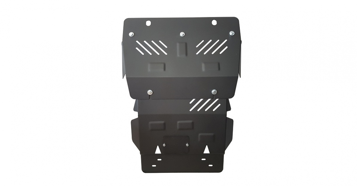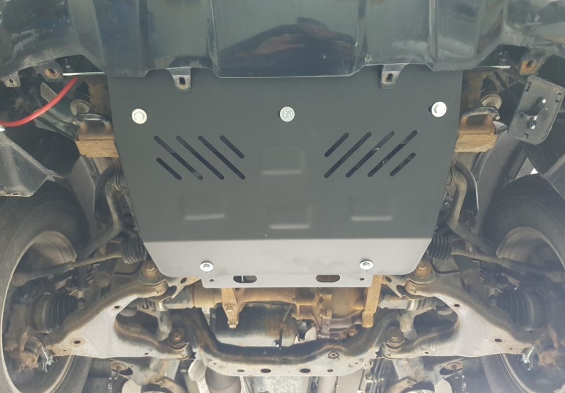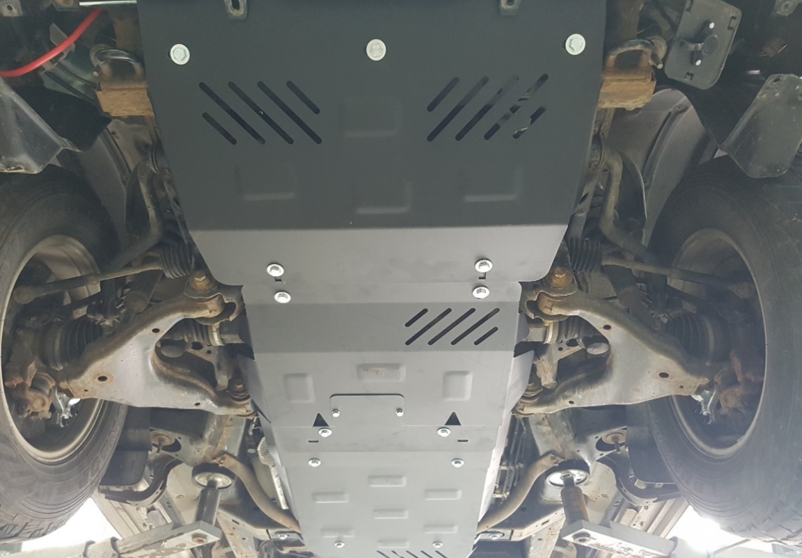 Le cache métallique protège: le bas du moteur, radiateur, pare-choc avant Le cache de protection est réalisé en Acier thermolaqué avec une épaisseur de 2,5 mm. Vis, écrous, pinces, tous les accessoires de fixation sont inclus. Toutes les plaques de protection sont revêtues de poudre pour prévenir la corrosion. L'extérieur de la plaque de protection est doté de renforts en Acier thermolaqué, ce qui augmente la résistance aux chocs. |