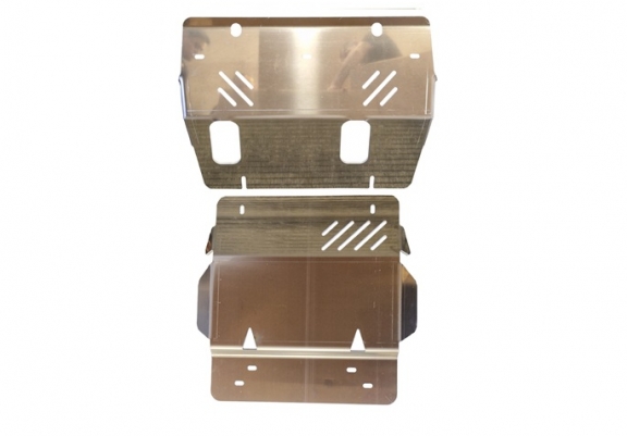 Le cache métallique protège: le bas du moteur, radiateur, pare-choc avant Le cache de protection est réalisé en Aluminium avec une épaisseur de 4 mm. Les boucliers sont en aluminium, mais les supports de fixation sont en acier. Vis, écrous, pinces, tous les accessoires de fixation sont inclus. Toutes les plaques de protection sont revêtues de poudre pour prévenir la corrosion. L'extérieur de la plaque de protection est doté de renforts en Aluminium, ce qui augmente la résistance aux chocs. |