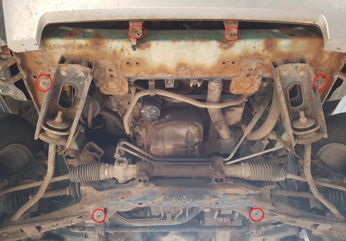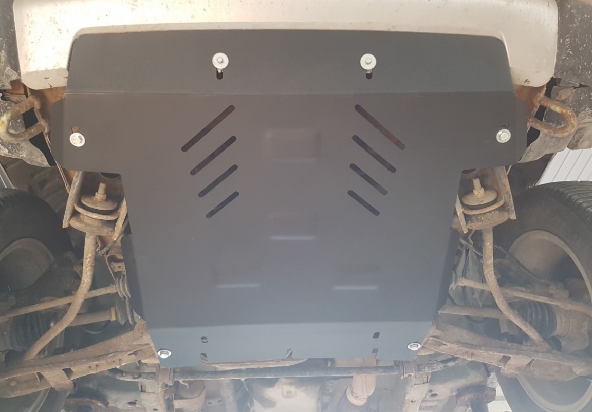 Le cache métallique protège: le bas du moteur Le cache de protection est réalisé en Acier thermolaqué avec une épaisseur de 3 mm. Vis, écrous, pinces, tous les accessoires de fixation sont inclus. Toutes les plaques de protection sont revêtues de poudre pour prévenir la corrosion. L'extérieur de la plaque de protection est doté de renforts en Acier thermolaqué, ce qui augmente la résistance aux chocs. |