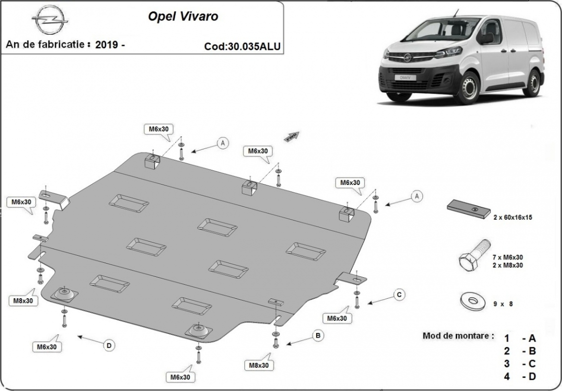 Protection sous moteur et de la boîte de vitesse Opel Vivaro - Aluminium (2019-2026)