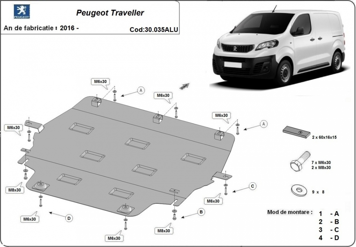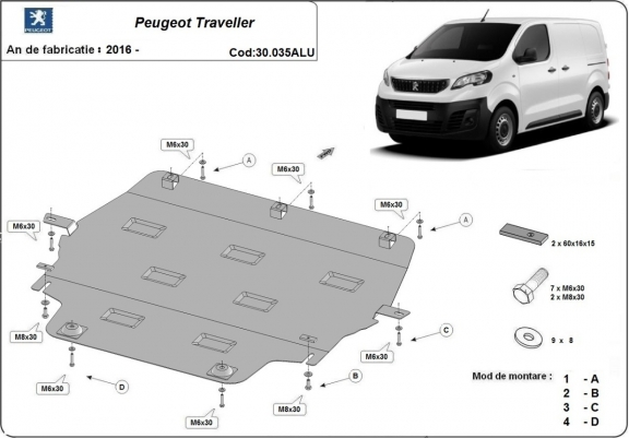 Protection sous moteur et de la boîte de vitesse Peugeot Traveller - Aluminium (2016-2026)