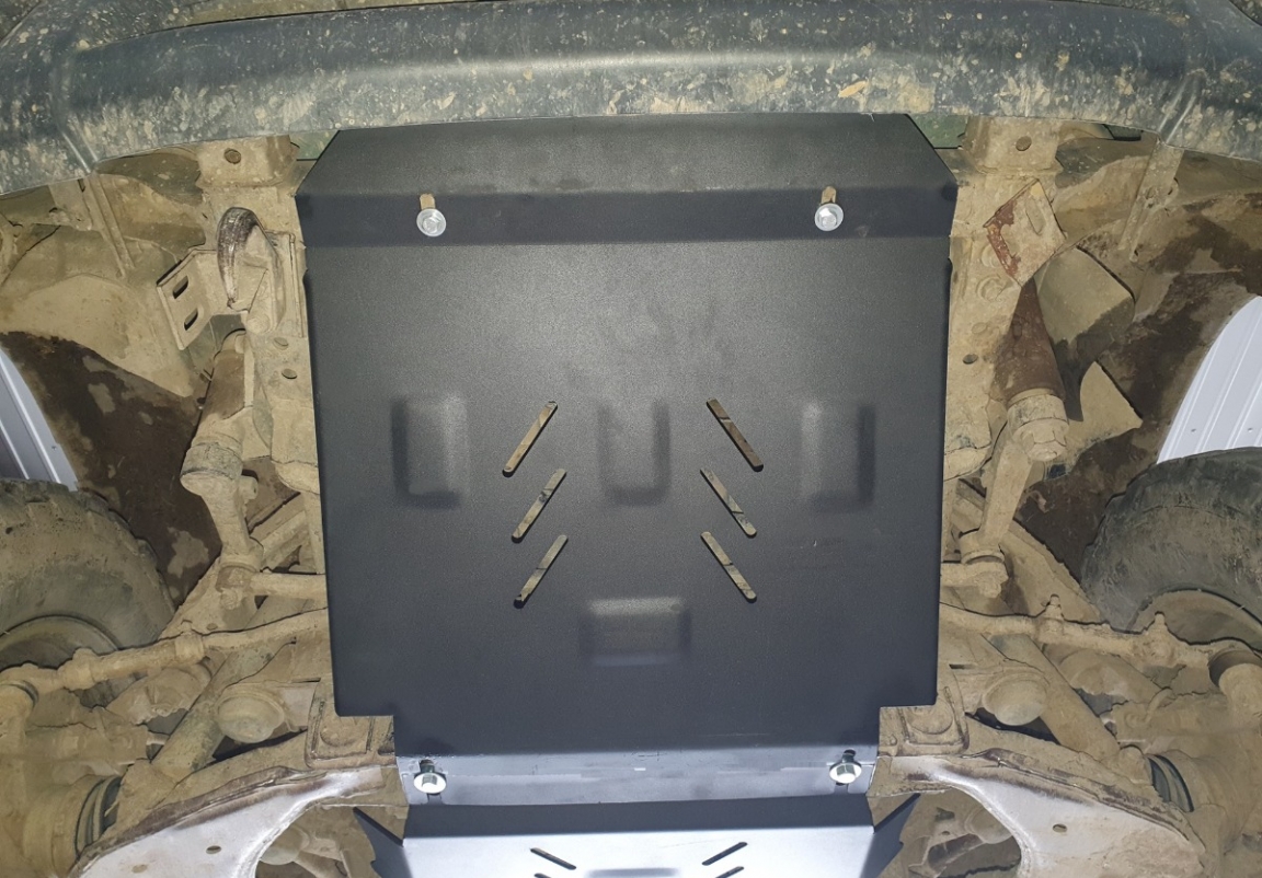 Le cache métallique protège: le bas du moteur Le cache de protection est réalisé en Acier thermolaqué avec une épaisseur de 3 mm. Vis, écrous, pinces, tous les accessoires de fixation sont inclus. Toutes les plaques de protection sont revêtues de poudre pour prévenir la corrosion. L'extérieur de la plaque de protection est doté de renforts en Acier thermolaqué, ce qui augmente la résistance aux chocs. |