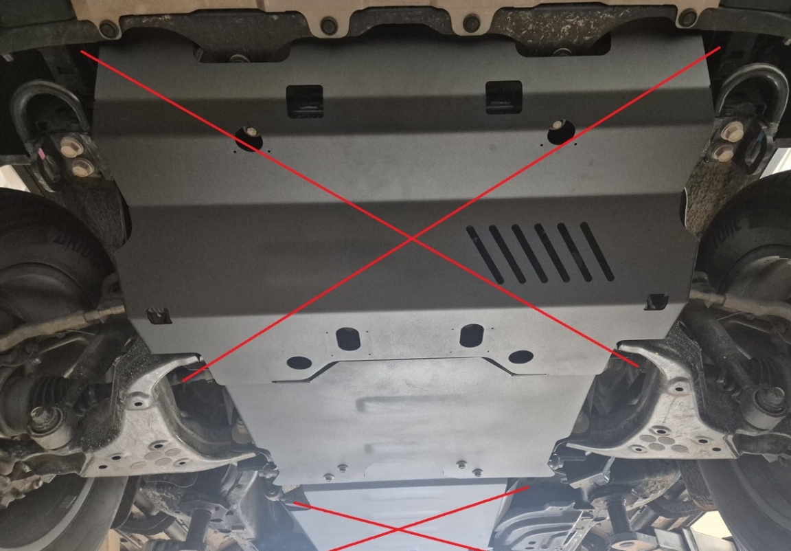 Le cache métallique protège: le bas du moteur, Différentiel avant Le cache de protection est réalisé en Acier thermolaqué avec une épaisseur de 3 mm. Vis, écrous, pinces, tous les accessoires de fixation sont inclus. Toutes les plaques de protection sont revêtues de poudre pour prévenir la corrosion. L'extérieur de la plaque de protection est doté de renforts en Acier thermolaqué, ce qui augmente la résistance aux chocs. |