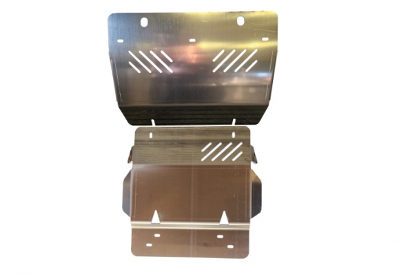 Le cache métallique protège: le bas du moteur, radiateur, pare-choc avant Le cache de protection est réalisé en Aluminium avec une épaisseur de 4 mm. Les boucliers sont en aluminium, mais les supports de fixation sont en acier. Vis, écrous, pinces, tous les accessoires de fixation sont inclus. Toutes les plaques de protection sont revêtues de poudre pour prévenir la corrosion. L'extérieur de la plaque de protection est doté de renforts en Aluminium, ce qui augmente la résistance aux chocs. |