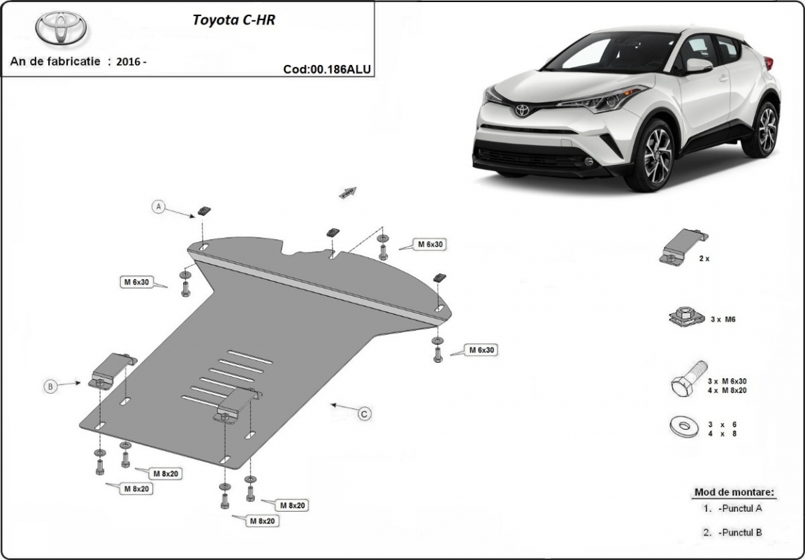 | Chaque voiture a des trous de vis fabriqués en usine pour le montage de la plaque de protection, ce qui rend le montage très facile. Vous pouvez le faire vous-même ou à n'importe quel point de service automatique. |