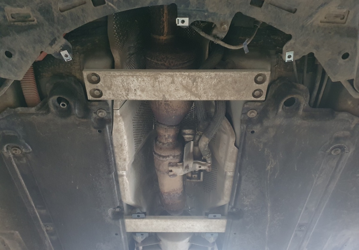 Le cache métallique protège: Convertisseur catalytique Le cache de protection est réalisé en Aluminium avec une épaisseur de 3 mm. Les boucliers sont en aluminium, mais les supports de fixation sont en acier. Vis, écrous, pinces, tous les accessoires de fixation sont inclus. Toutes les plaques de protection sont revêtues de poudre pour prévenir la corrosion. L'extérieur de la plaque de protection est doté de renforts en Aluminium, ce qui augmente la résistance aux chocs. |